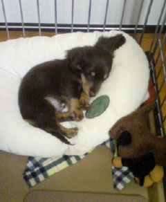 なんだか名作劇場作品のサブタイトルみたいですが、我が家に新しい家族がやってくることになりました。ミニチュアダックス(チョコレート&タン)の子犬なのですが、一時もじっとしていないわんぱく坊主なので、犬を飼った経験のない私は、毎日が慌ただしくて大変です。起きている時は、動き回ってピントが合わないので、顔を寝ている時しか写真を撮るチャンスがありません。